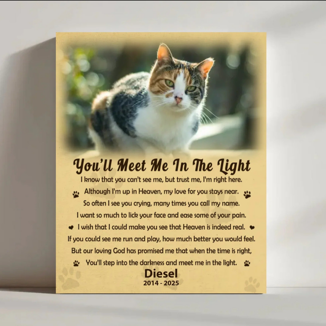You'll Meet Me In The Light Cat Poem | Custom Cat Memorial Canvas Print