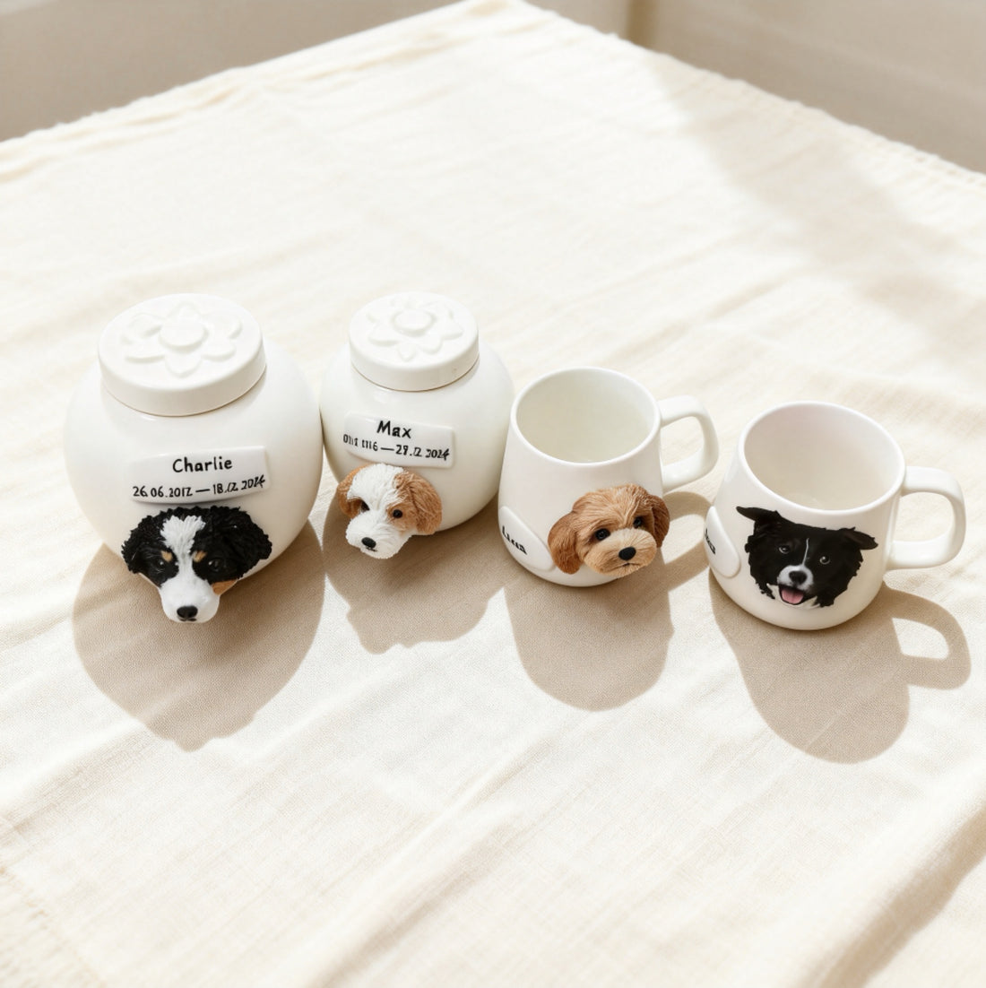 Custom Hand-Sculpted Pet Statue Mug – 3D Ceramic Portrait Cup with Floral Details